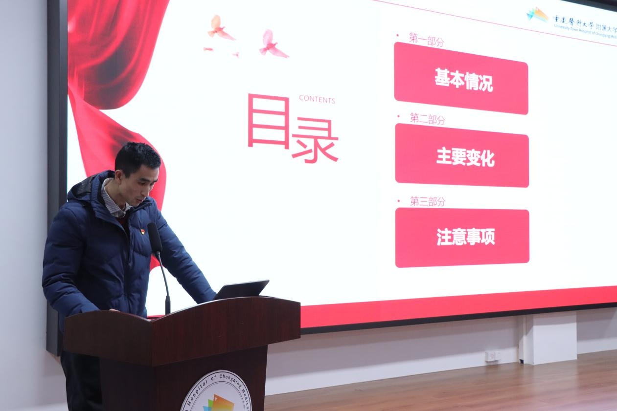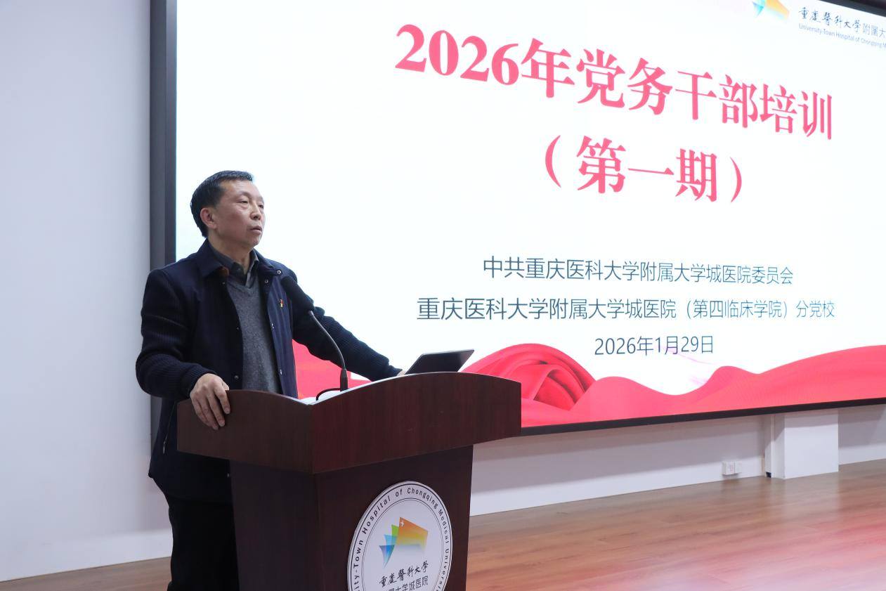 1月29日,重庆医科大学附属大学城医院党委、重庆医科大学附属大学城医院(第四临床学院)分党校组织开展了2026年第一期党务干部培训。院党委书记毕恣出席会议并讲话。各党支部书记、支部委员,党委办公室、宣传科、纪检室、群团部门工作人员参加会议。会议由纪委委员、党委办公室主任唐艳光主持。