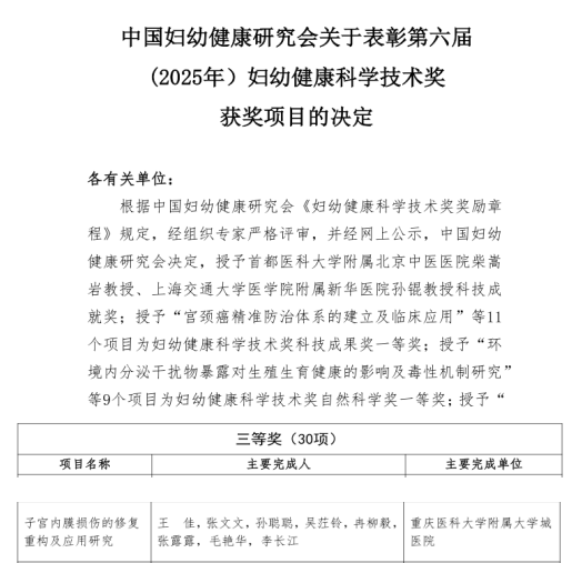 重庆医科大学附属大学城医院妇产科系我院重点学科,重庆市妇科微创诊治特色专科,重庆市妇产科医师规范化培训基地,重庆市“青年文明号”,重庆市卫健委”巾帼文明岗”,重庆市妇幼卫生学会妇科内分泌与肿瘤专业委员会培训基地,全国PAC优质服务医院。已形成妇科、产科、计划生育二级学科,建成妇科肿瘤、生殖内分泌、宫颈疾病、盆底疾病、高危妊娠等规范的专业组。