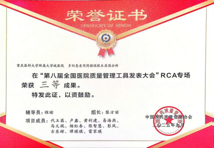 近年来,医院护理团队始终以患者需求为导向,积极运用品管圈、RCA、FOCUS-PDCA 等现代质量管理工具,持续推进医疗质量与安全改进。此次获奖既是对护理团队质量管理工作的肯定,更是未来持续深化质量建设的动力。医院护理团队将以此次大会为契机,进一步总结优秀经验,推动护理质量管理创新实践,为保障患者健康、助力健康中国建设贡献更大力量。