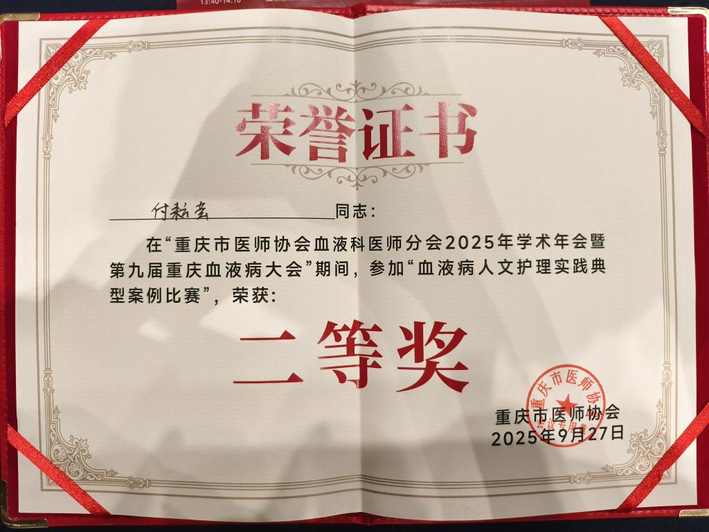 在当天下午举办的血液病人文护理实践典型案例比赛中,肿瘤血液科选送的护理案例《破孤寂之茧,塑新生之翼》,凭借其创新的理念、科学的实践和显著的效果,在众多优秀案例中脱颖而出,荣获二等奖。