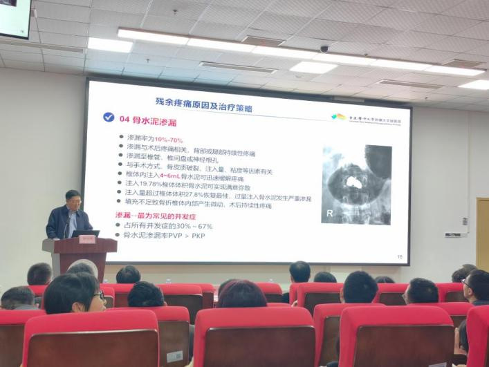 高新区骨科专家同样带来了高质量学术分享。胡侦明教授针对“椎体成形术后残留腰背疼痛原因分析”进行深入讲解。他结合丰富的临床经验,从手术操作细节、患者个体差异到术后康复管理等多个维度,全面剖析术后疼痛原因,并提出了针对性的解决策略,为临床医生提供了极具价值的实践指导。