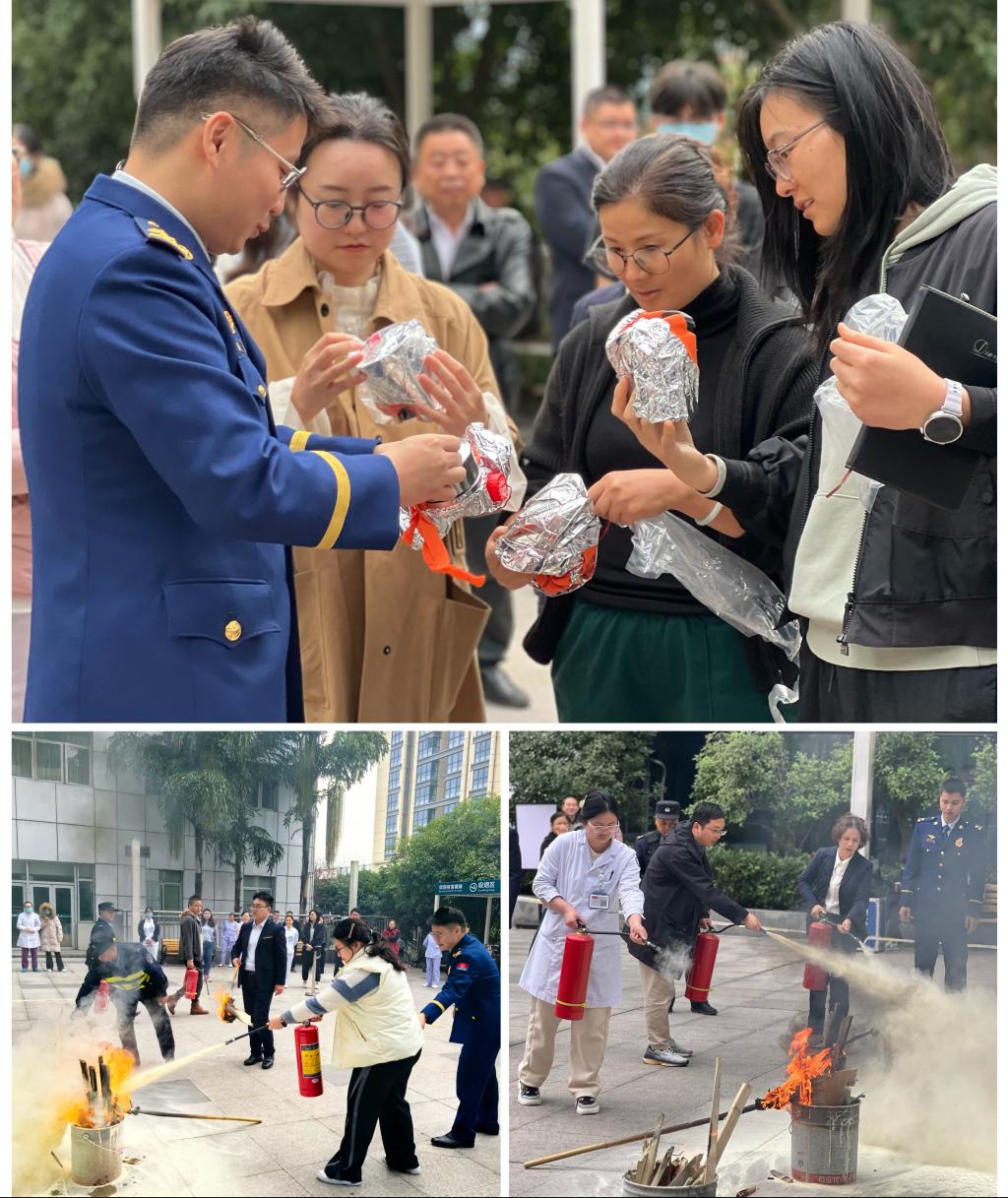 11月13日下午,我院沙坪坝区大学城消防救援站紧密联动,共同开展了一场别开生面的消防培训演练活动。此活动作为2025年消防宣传月的重要环节,以“全民消防、生命至上——安全用火用电”为主题,通过多层次、全方位的演练安排,切实提升了我院消防安全水平。
