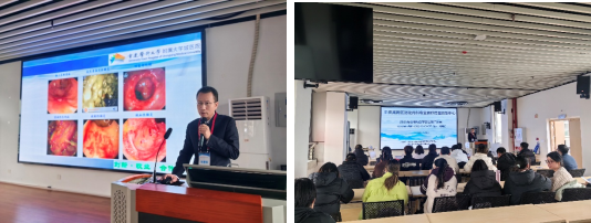 12月26日的培训聚焦肝硬化及相关并发症诊疗实践新进展及内镜操作演练两大核心板块,兼具学术深度与实操价值。上午学术专题,邀请重庆医科大学附属第二医院消化内科张浩教授、陆军军医大学附属西南医院内镜中心主任陈磊教授,赣州第五人民医院消化内科主任梁斌教授及院内肝病专家围绕食管胃底静脉曲张内镜下硬化治疗精准与规范、肝硬化并自发性腹膜炎治疗进展、肝硬化肝性脑病等相关诊治进行了激烈讨论。同时专家们结合丰富的案例、视频图像等就超声内镜在消化疾病中的临床应用、内痔规范化精准诊治等方面进行了精彩的教学及分享,为参会学员传递前沿诊疗思路,提升了复杂消化道出血和内痔疾病的综合管理水平。