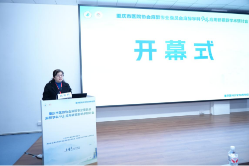 重庆市医院协会麻醉专委会主任委员郁葱教授率先致开幕辞,围绕麻醉学科的发展现状与临床应用需求,强调了本次研讨会聚焦“新视野”的核心意义,希望以学术交流为纽带,促进全市麻醉同仁互学互鉴、共同进步。