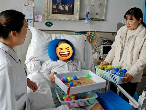 趣味游戏环节,熊秀、安玉章、吴永乐等党员同志和患者们一起参与“趣味夹元宵”“欢乐滚元宵”“元宵投壶”等活动,现场笑声不断。