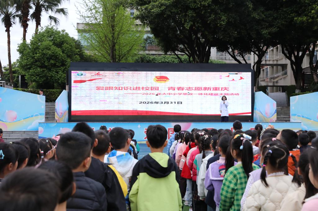 为深入推进大中小学思政一体化建设,落实立德树人根本任务,充分发挥青年志愿服务力量,将生命安全教育与健康护眼知识送进课堂,3月31日,重庆医科大学附属大学城医院团委组织青年医护志愿者团队,走进重庆市大学城第一中学校(初中部)与重庆大学城人民小学校,开展了一场别开生面的主题科普活动。